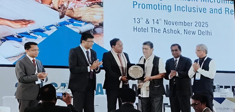Sanghamithra Rural Financial Services is proud and honoured to share that our Founder Chairperson, Padmashree Mr. Aloysius Prakash Fernandez, was recognized by the Secretary, Department of Financial Services (DFS), Government of India, at the 20th Sa-Dhan National Conference (13-14 November 2025 at New Delhi) on Inclusive Growth for his outstanding contributions to Women’s Empowerment and Financial inclusion. In recognition of his decades of impactful work in the social sector, microfinance, and financial inclusion, Sa-Dhan conferred the prestigious Lifetime Achievement Award. Our Chief Executive Officer, Mr. Sunil Jadli together with the Sanghamithra team, had the privilege of representing us on this proud occasion.